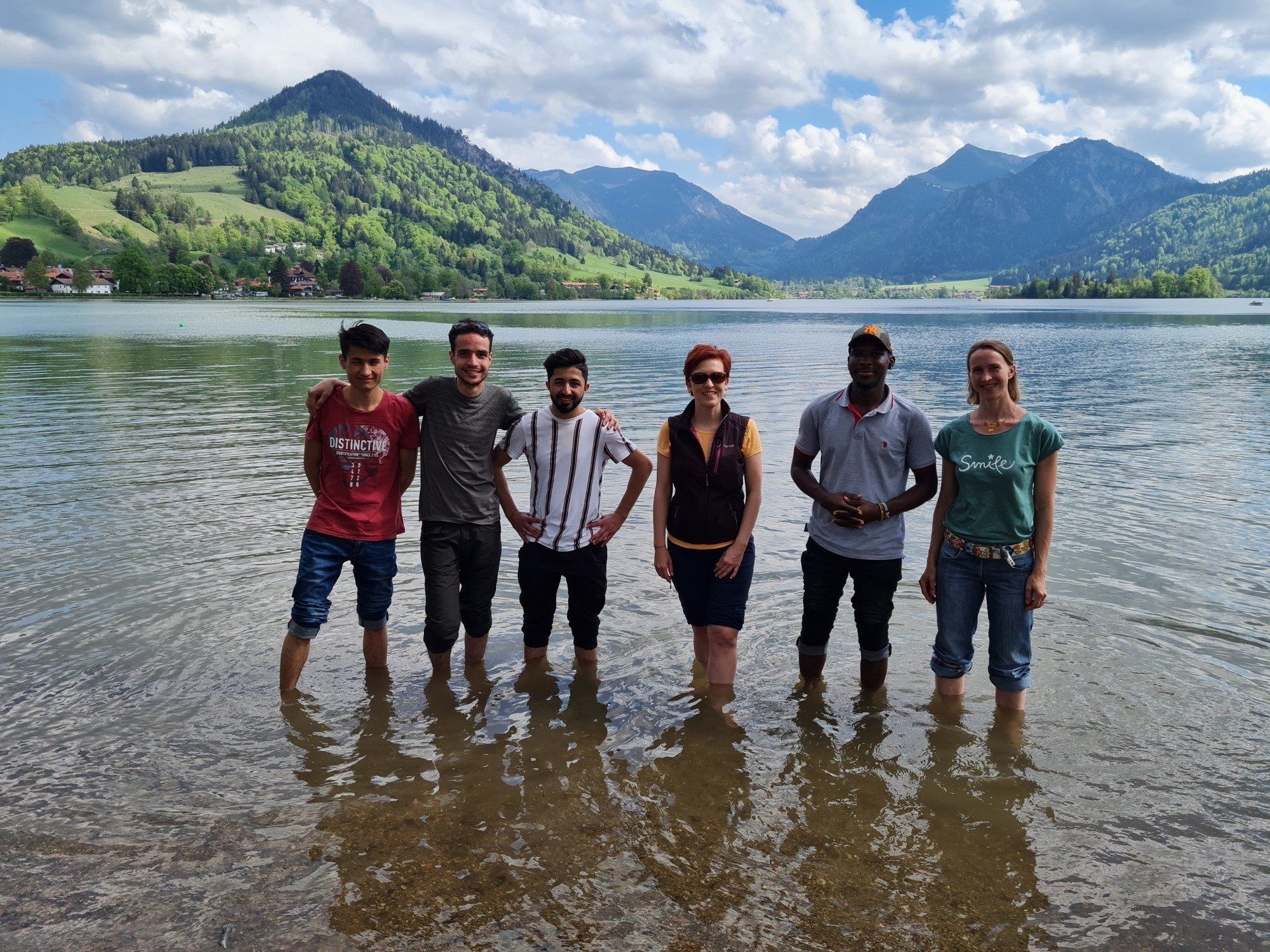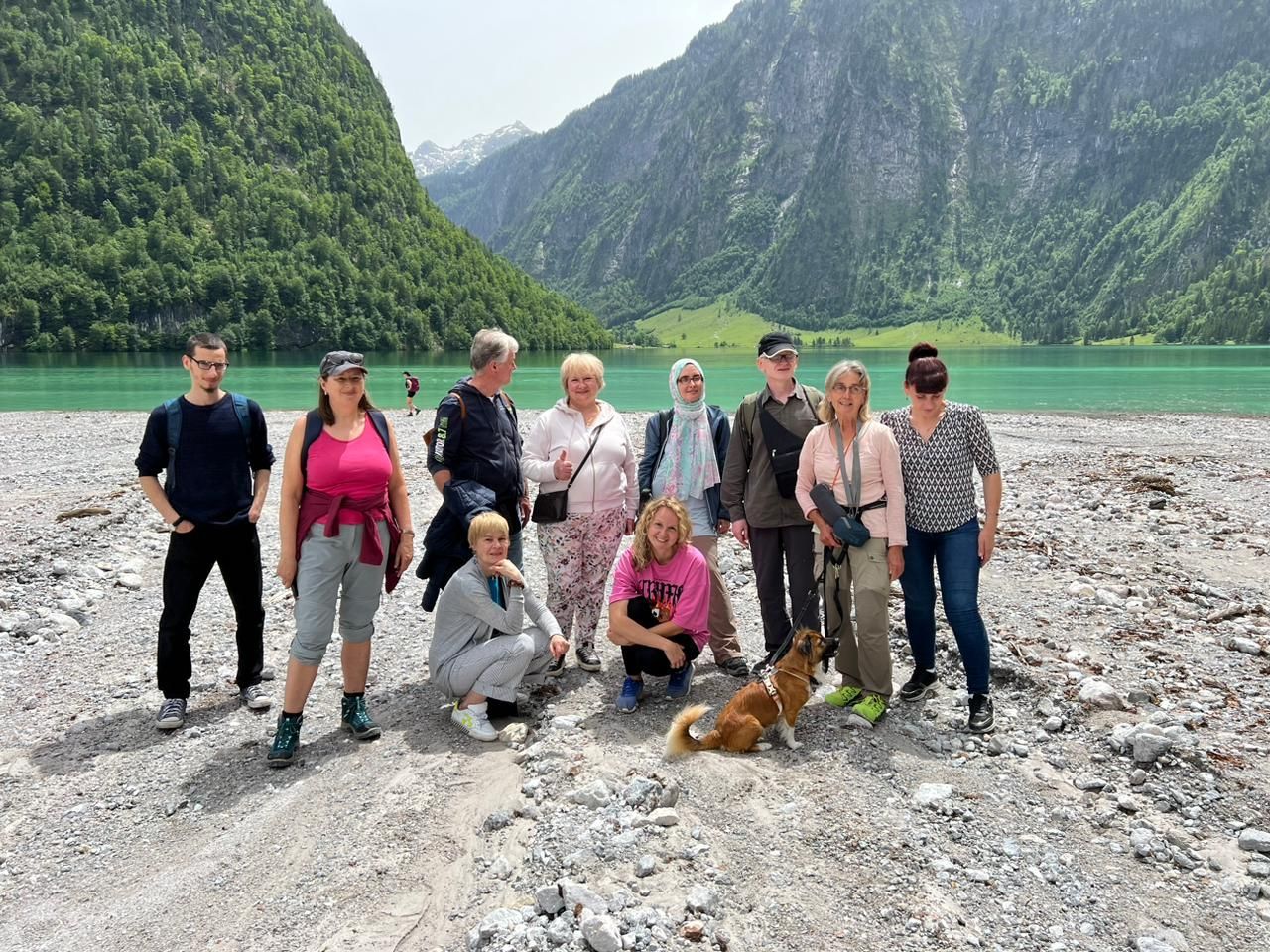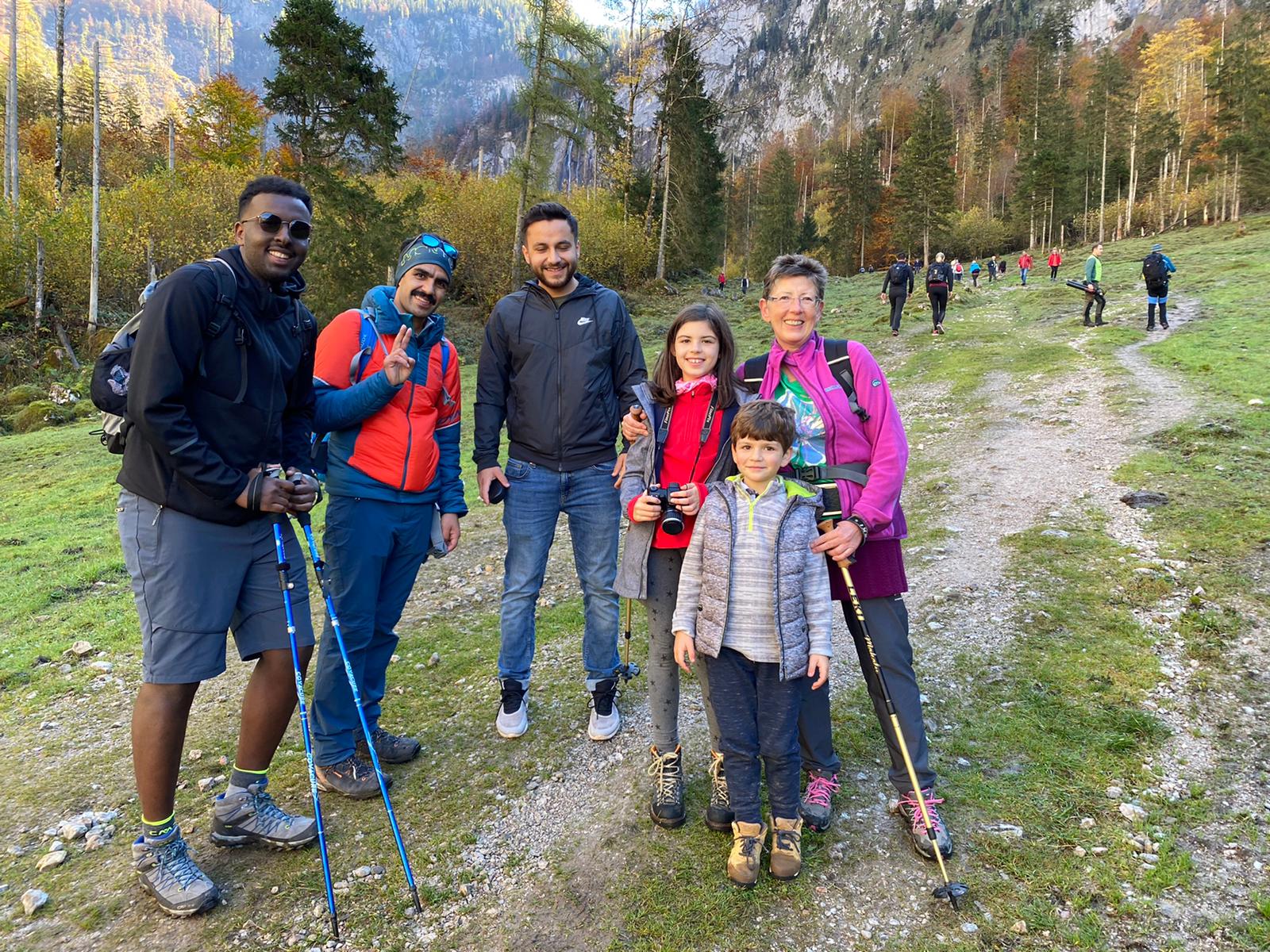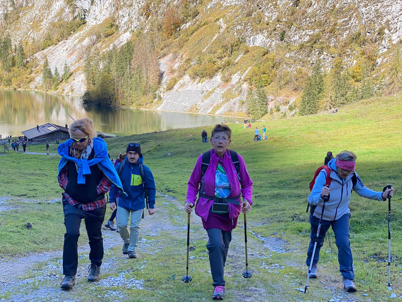 Mit dem Schiff ging es über den Königssee zum Obersee. Dort begann die Wanderung vor der großartigen Bergkulisse. Die Tour wurde von einem Kamerateam begleitet. Ein Film über den A.L.M. - Tourenleiter Mahbob wurde gedreht. Mahbob kommt aus Afghanistan. Als er nach Deutschland nahm er an den Wanderungen von A.L.M. teil. Das gefiel ihm so gut, dass er beim DAV seinen Wanderleiterschein machte. Jetzt führt er selbst viele A.L.M.-Wanderungen im Berchtesgadener Land.