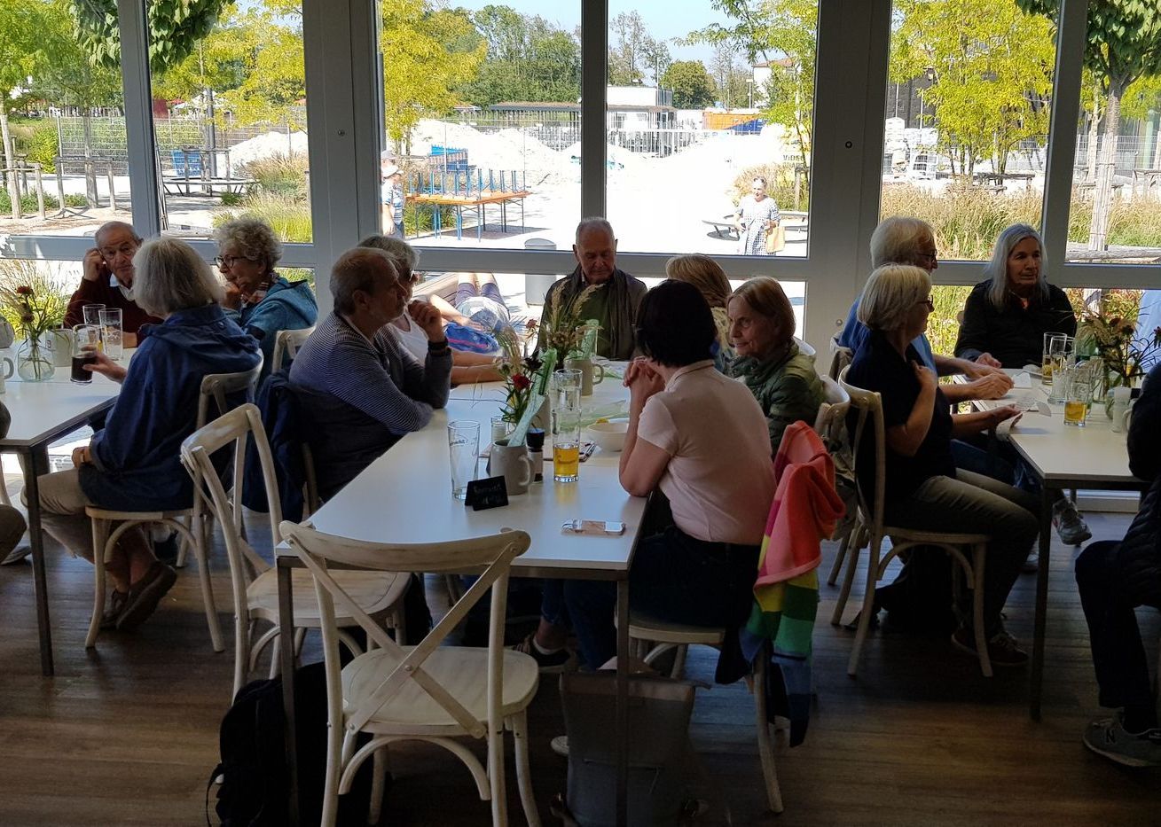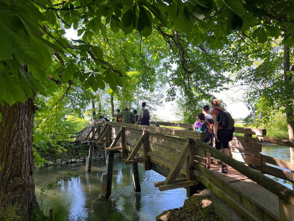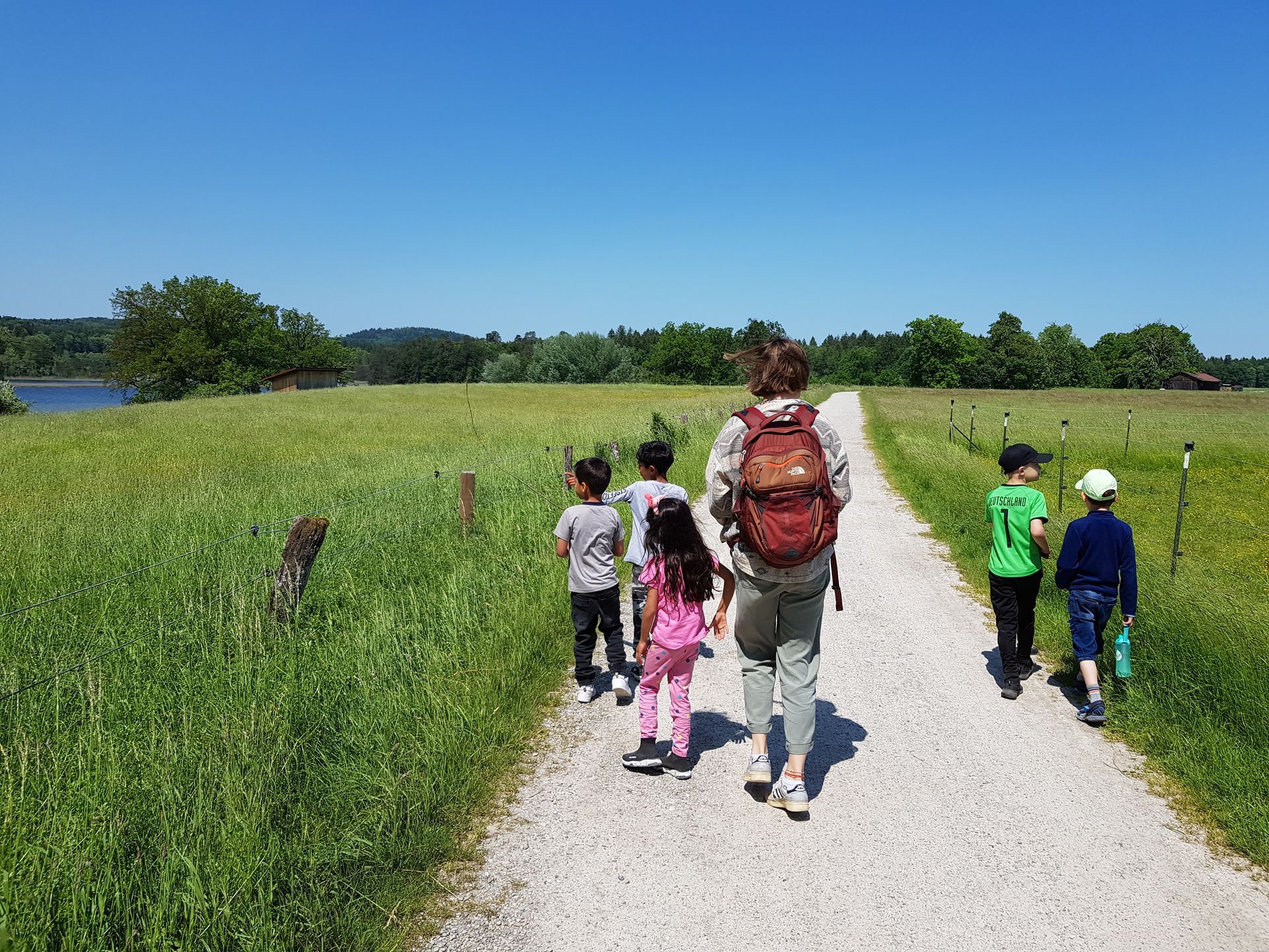 Jeden Monat finden einen Wanderung gemeinsam mit Teilnehmenden der Lebenshilfe und Geflüchtete statt. Zusammen genießt man die Ausflüge, wie hier zum Weßlinger See, in die Isarauen oder nach Schöngeißing zum Jexhof.