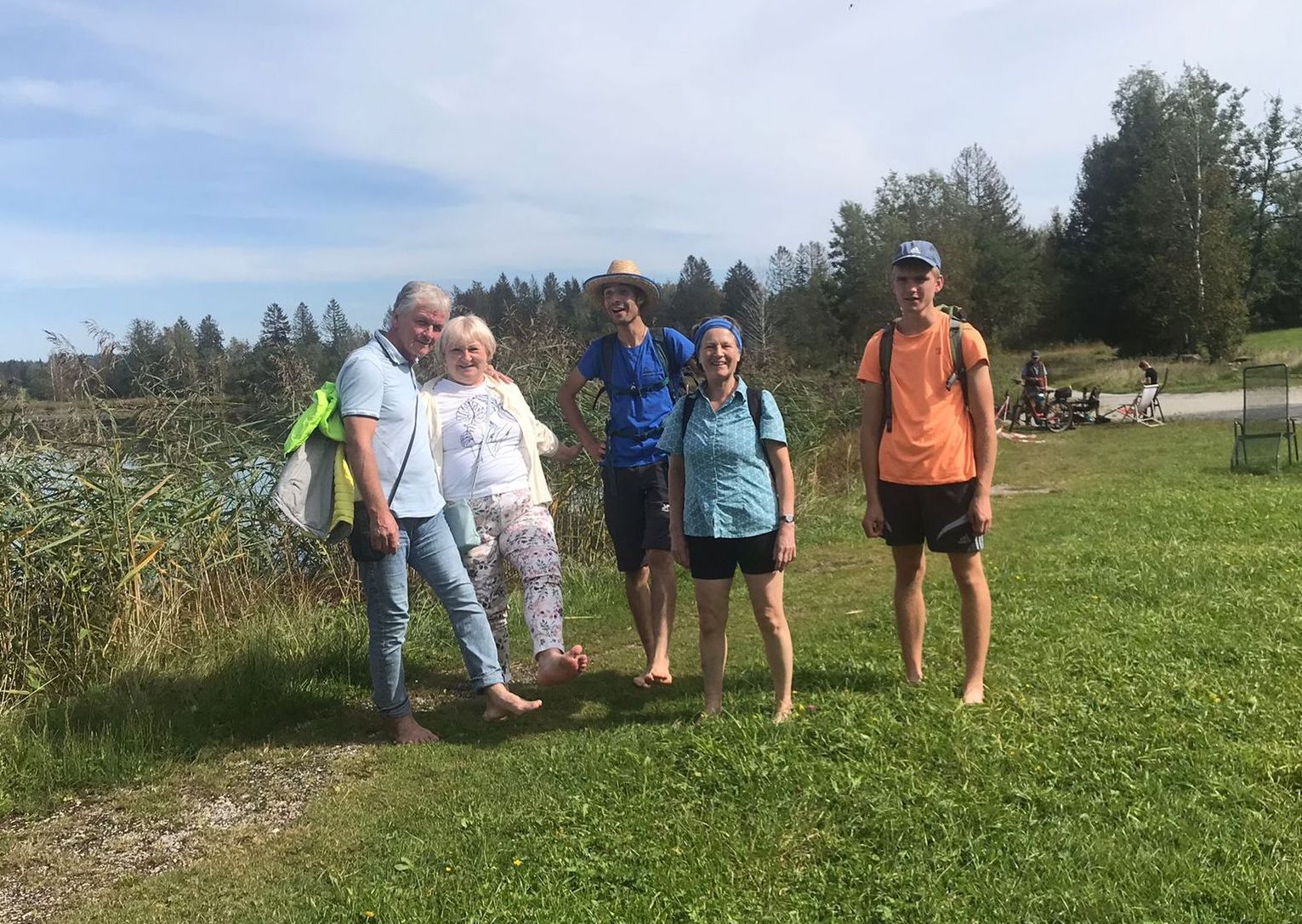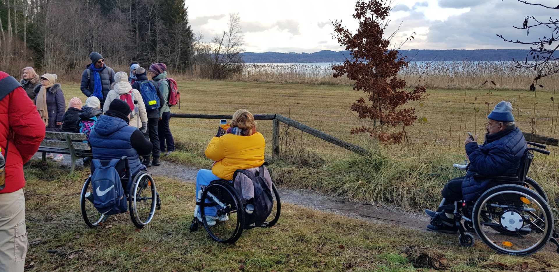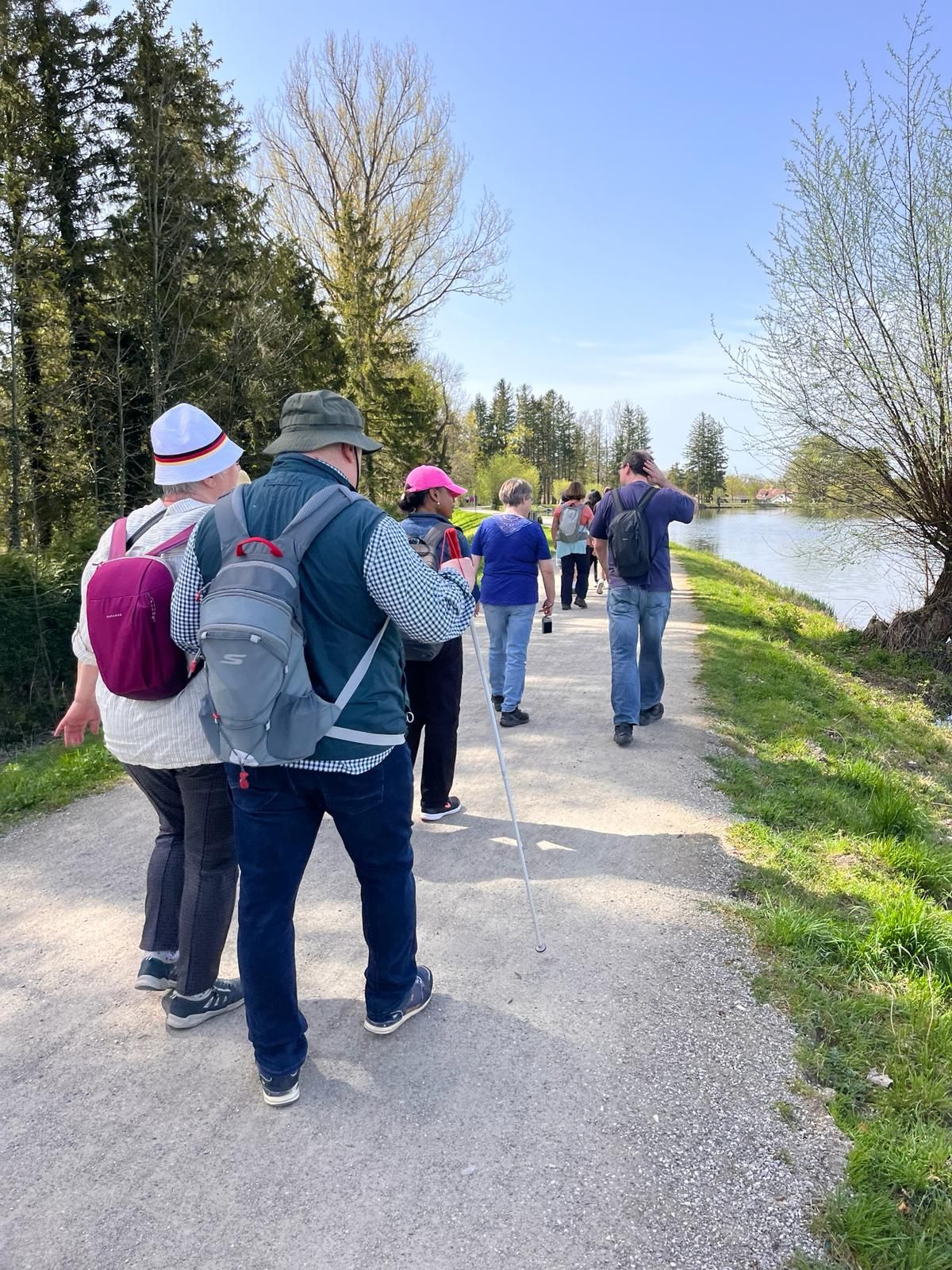 Jeden Monat finden einen Wanderung gemeinsam mit Teilnehmenden der Lebenshilfe und Geflüchtete statt. Zusammen genießt man die Ausflüge, wie hier zum Weßlinger See, in die Isarauen oder nach Schöngeißing zum Jexhof.