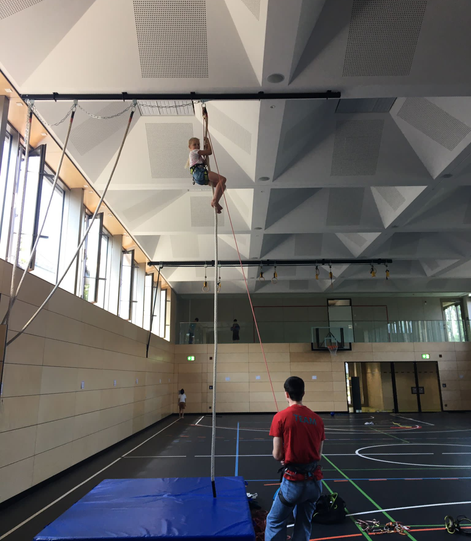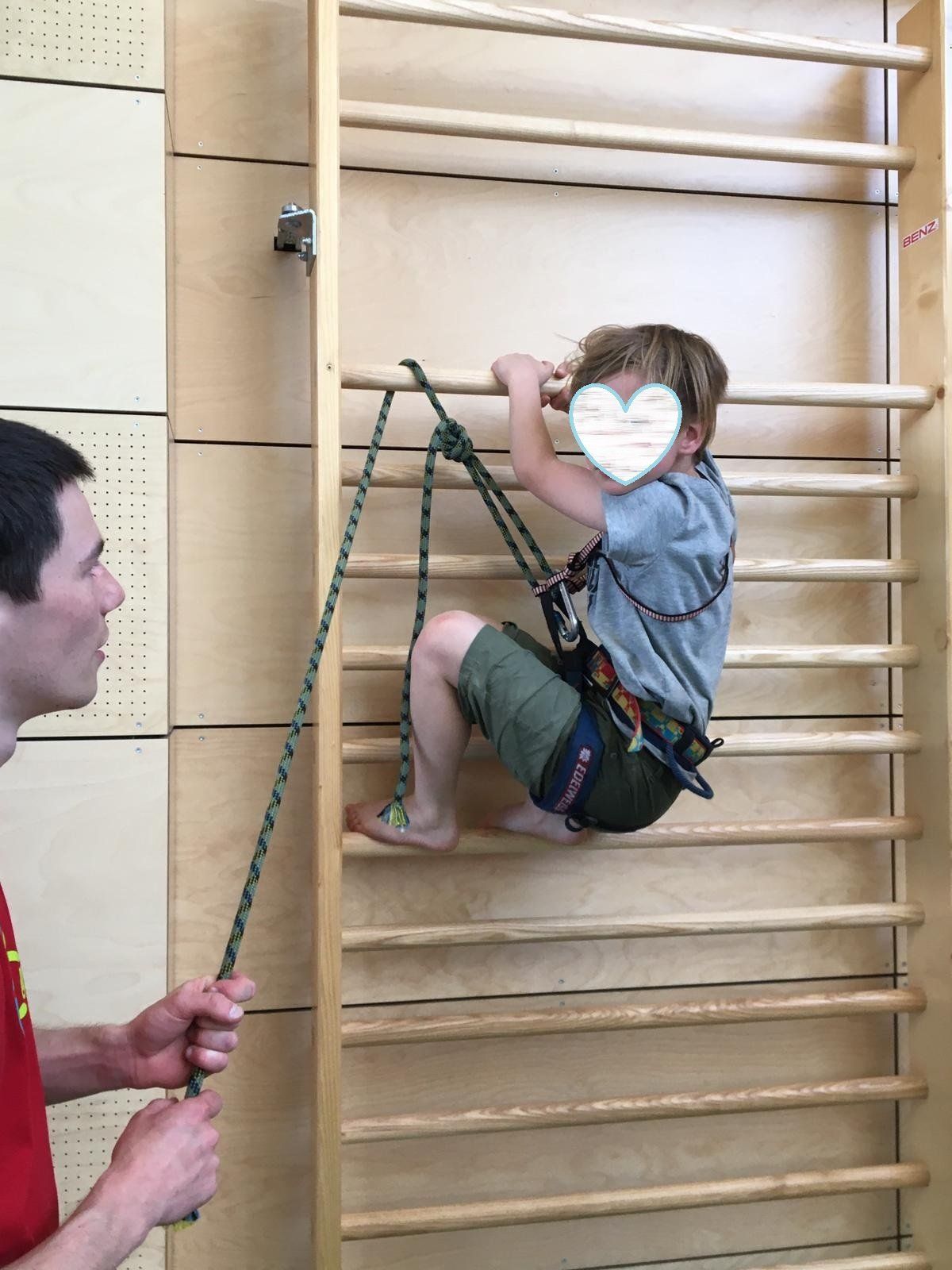 Richtig klettern mit Seil und Sicherung! Und erstaunlich wie hoch schon alle geklettert sind. Die Teilnehmergruppe war bunt gemischt. Kinder, Jugendliche, Erwachsene aus unterschiedlichen Ländern. Auch ein Teilnehmer mit Behinderung war.