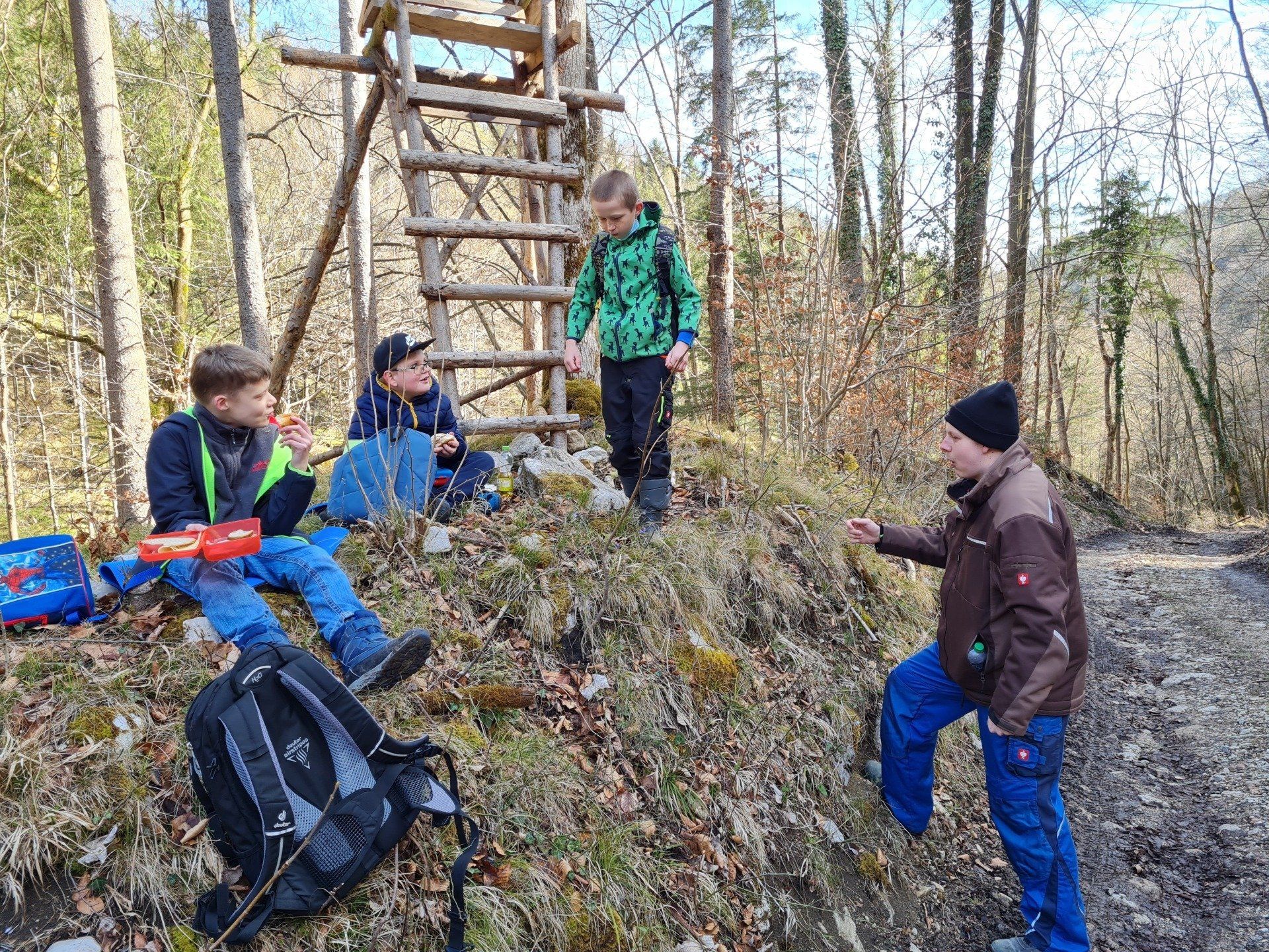 Von Hausham ging es den Erlebnispfad hoch zur Huberspitzalm. Ein Kakao war jetzt recht zum Wärmen und Stärken.