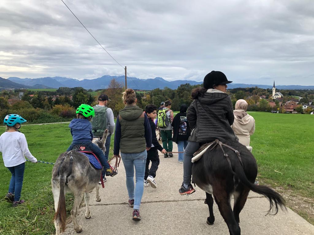 Die Eselwanderung war ein riesiger Erfolg. Esel bürsten, Katzen streicheln und dann der Ausritt auf dem Rücken der Esel. Alle waren begeistert von diesem Ausflug nach Riedering.