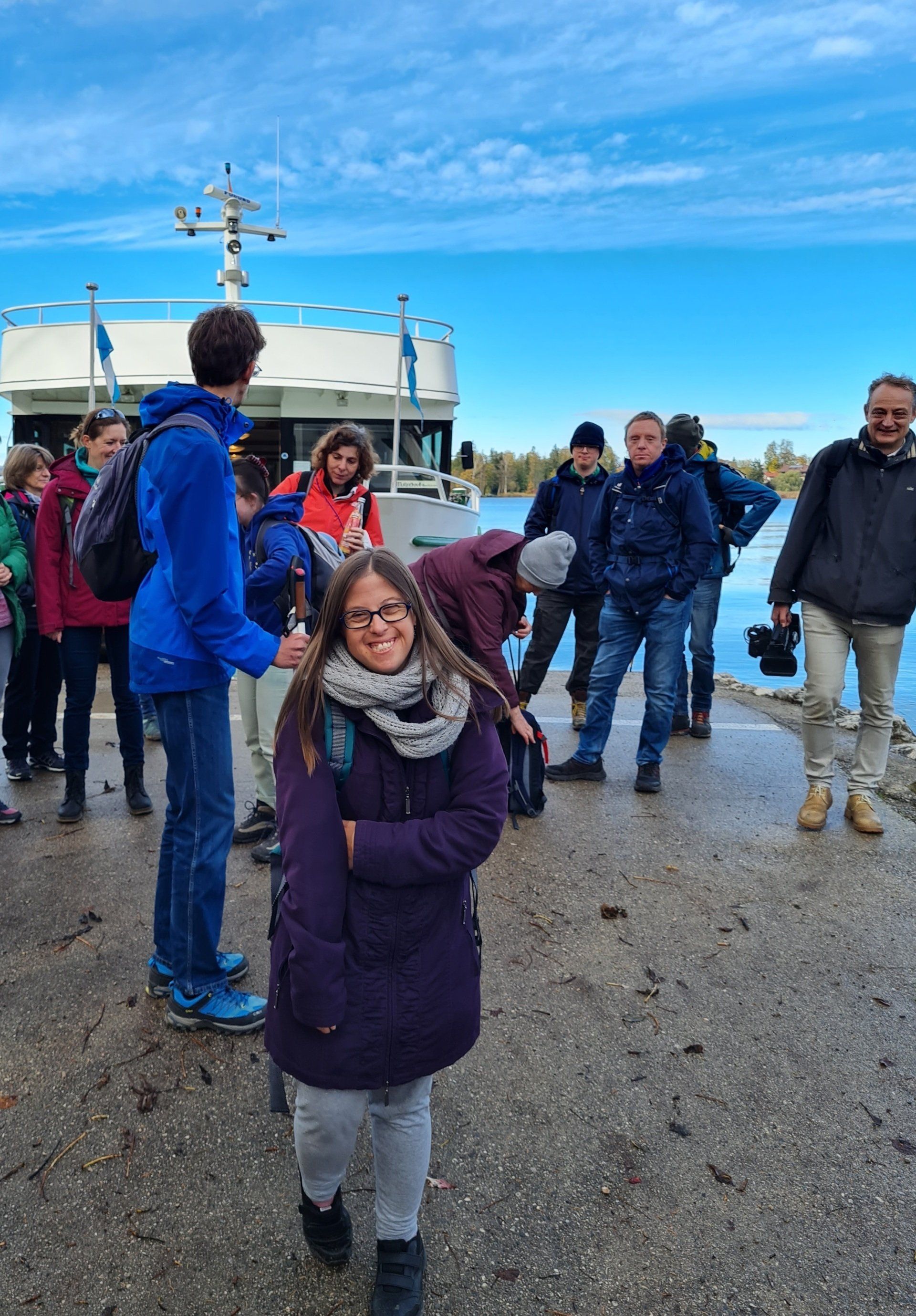 Unser Kameramann wurde natürlich herzlich in die Gruppe aufgenommen. Es war ein sehr schöner Ausflug. Erst machten wir eine Schifffahrt über den Staffelsee. Dabei wurde es immer sonniger. Danach wanderten wir den Drachenstichrundweg. Am Schluss bummelten wir noch durch Murnau.