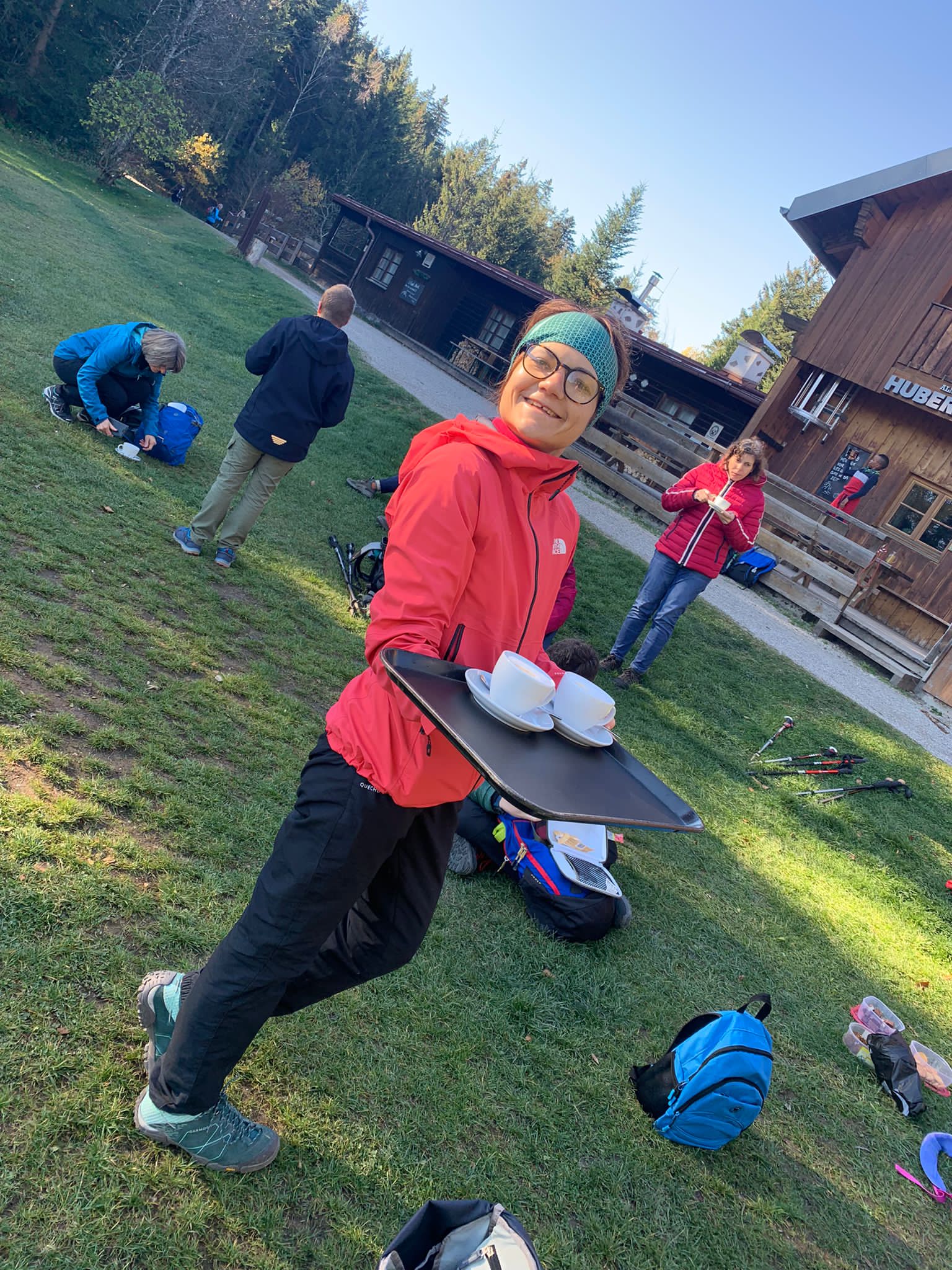 Die war mit Rollstuhl, Kinderwagen und auch für kleine Wanderer gut zu bewältigen. Auf der Hüttenrast spendierte Siemens Getränke und Kaiserschmarrn, das machte sie noch schöner!