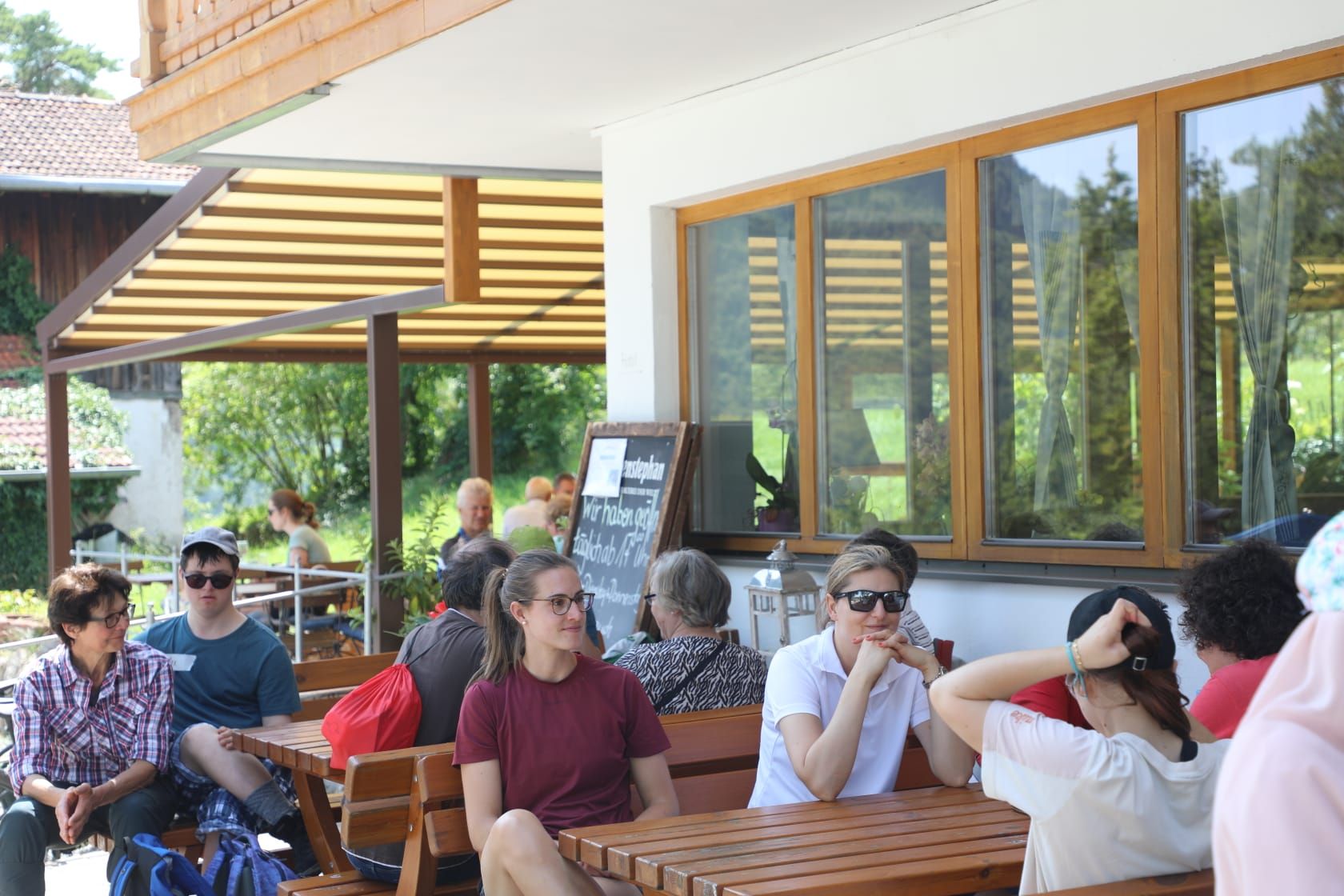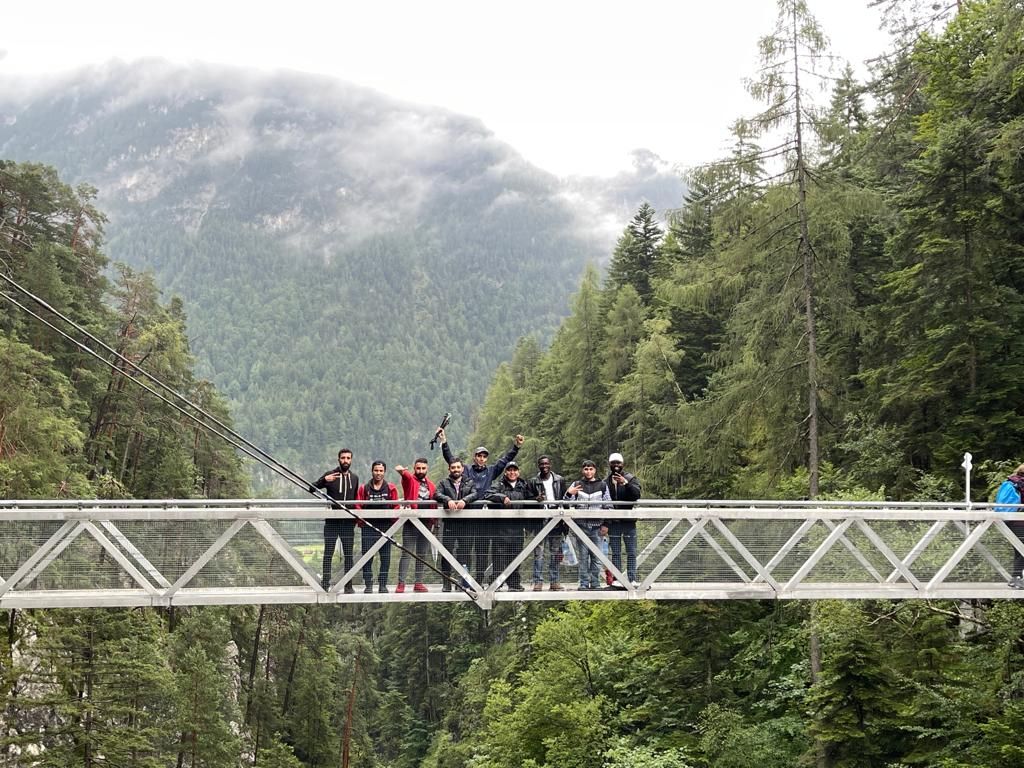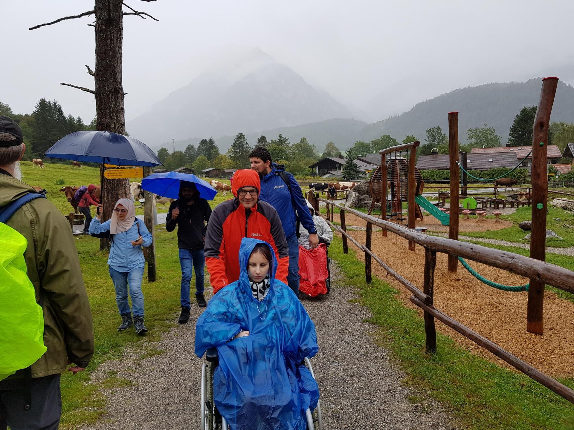 Mit einer bunt gemischten Gruppe aus München fuhren wir nach Garmisch, um uns mit einer Gruppe Geflüchteter zu treffen, die in einer Unterkunft in Garmisch leben. Die Garmischer Gruppe wurden begleitet von einem Betreuer der Malteser Werke.