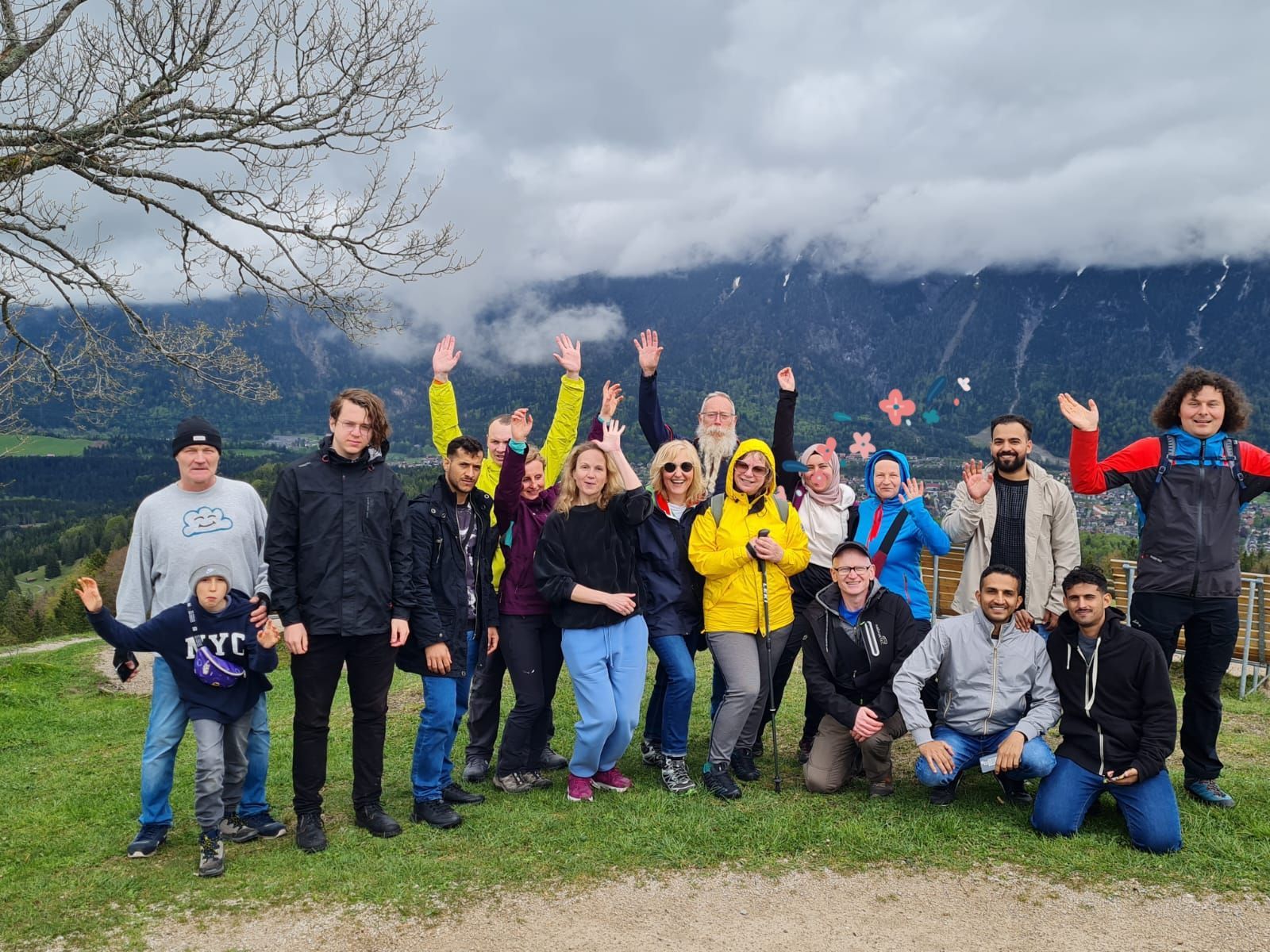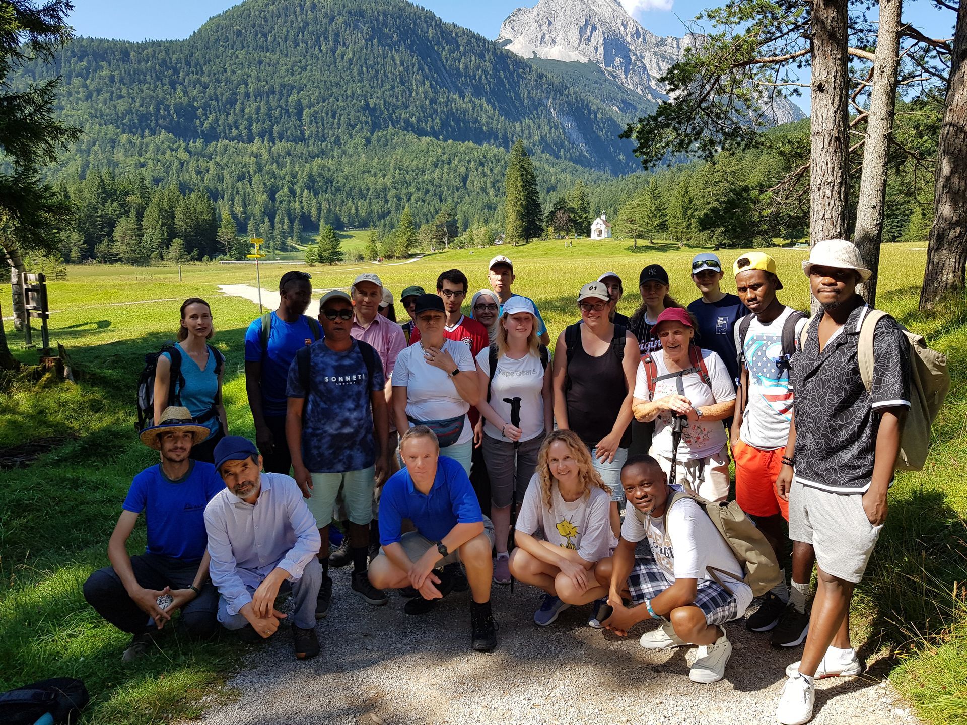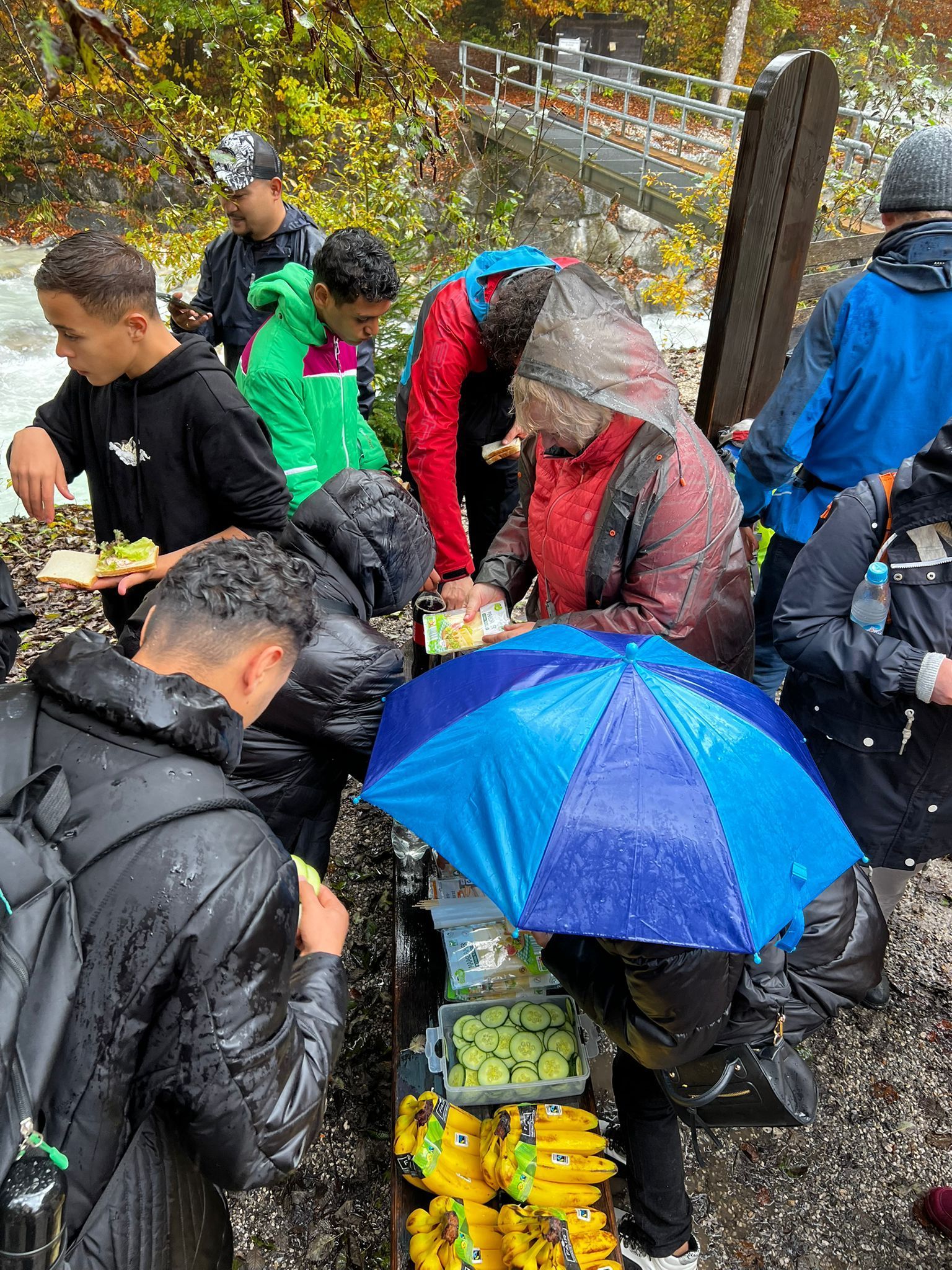 Mit einer bunt gemischten Gruppe aus München fuhren wir nach Garmisch, um uns mit einer Gruppe Geflüchteter zu treffen, die in einer Unterkunft in Garmisch leben. Die Garmischer Gruppe wurden begleitet von einem Betreuer der Malteser Werke.
