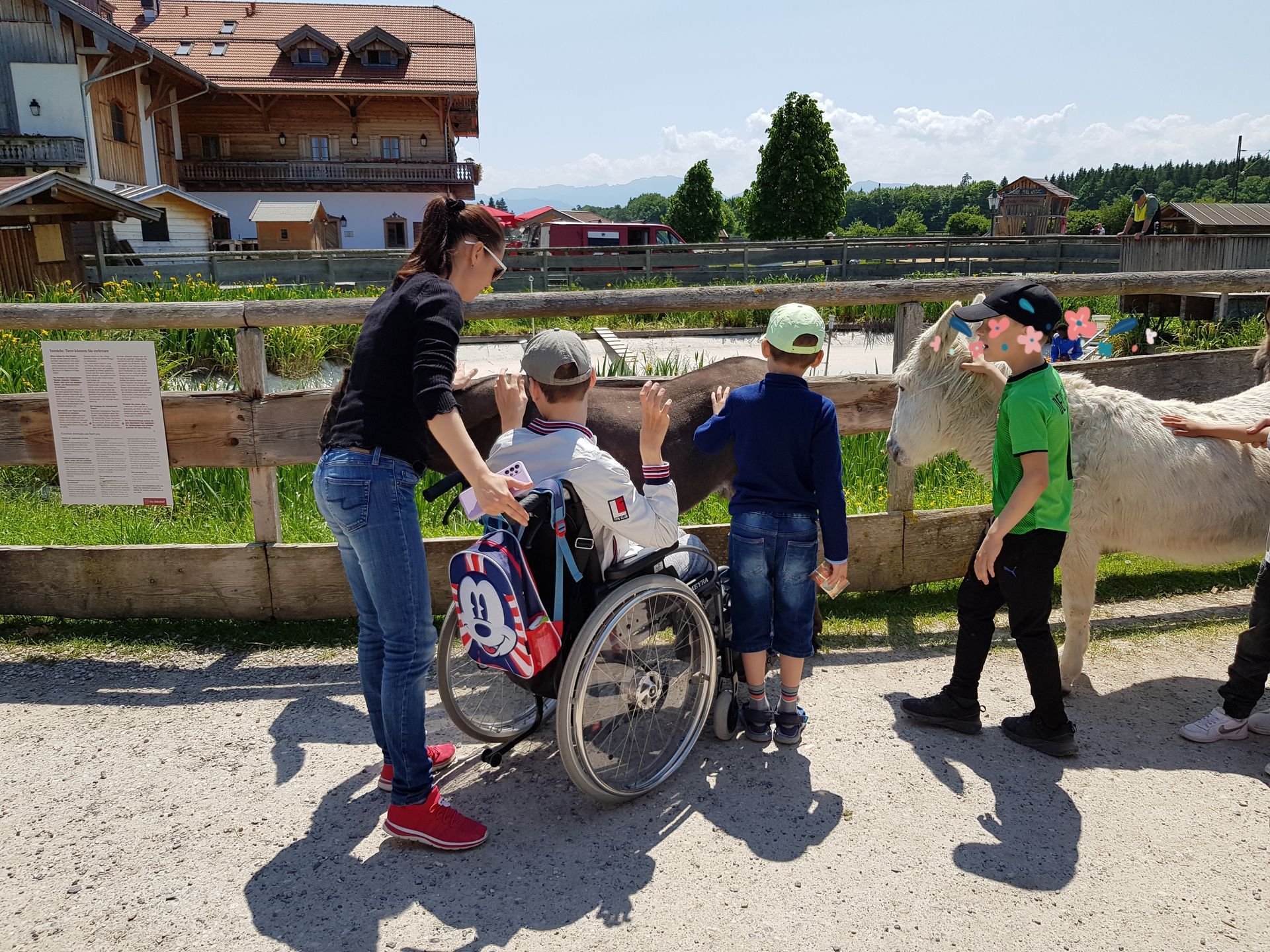 Geflüchtete Familien genießen einen Tag im Gut Aiderbichl