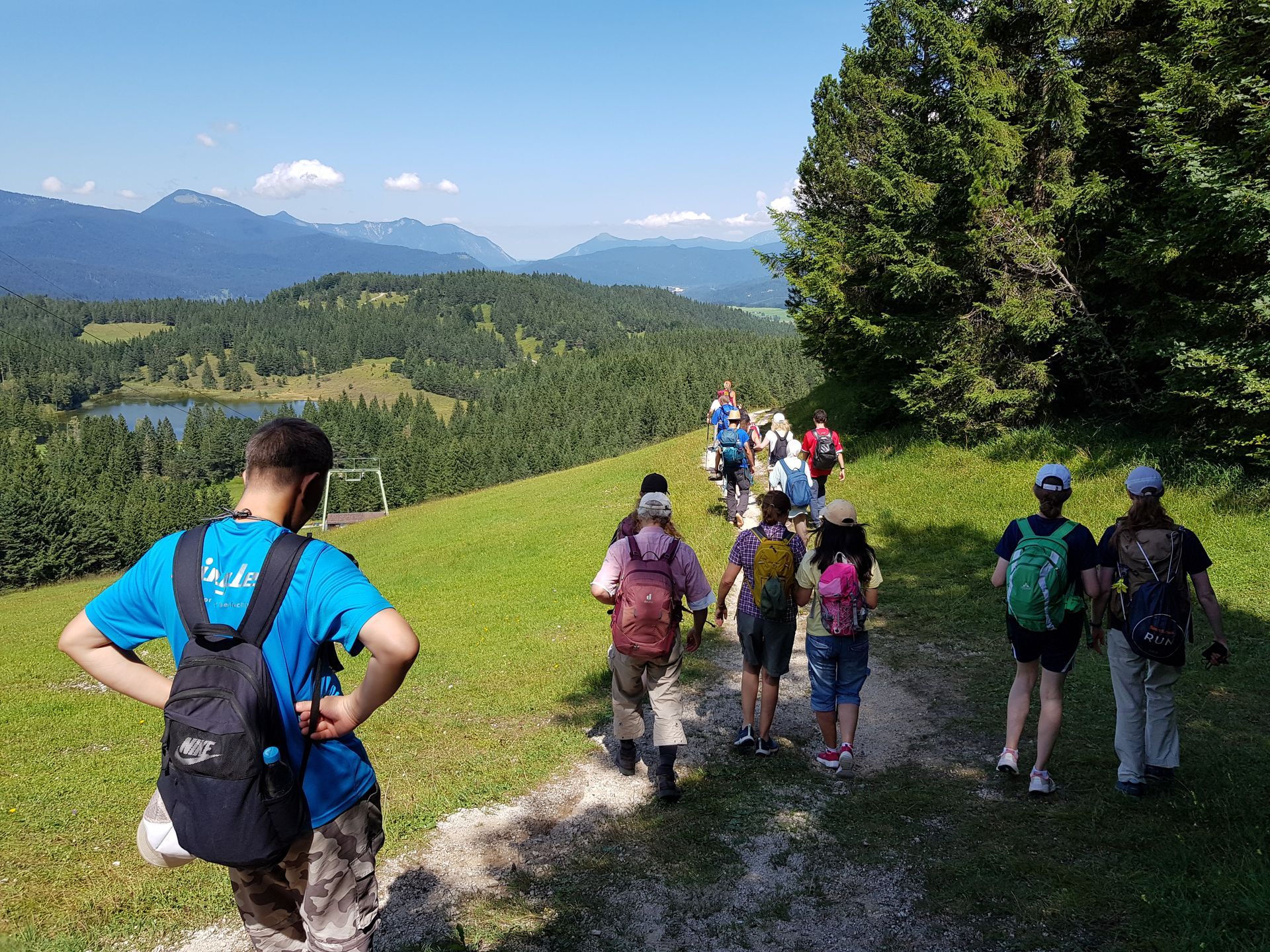Der Abstieg zum Schliersee ist teils recht steil. Gut, dass es so viele Helfer gab! Mit vereinten Kräften haben es alle geschafft. Auch die Kinder aus der Geflüchtenunterkunft hatten sehr viel Spaß bei dieser Wanderung! Es war für sie wie ein Abenteuer.