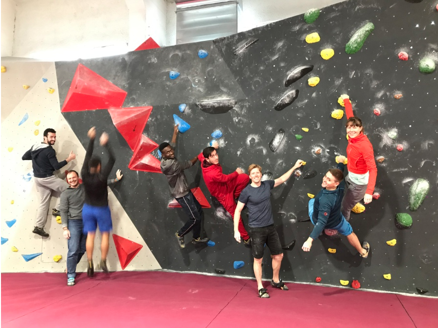 Mai 2022: Bouldern im Einstein München. Dieser Tag gab Gelegenheit das Klettern ohne Seil auszuprobieren und es machte allen sichtlich Spaß.